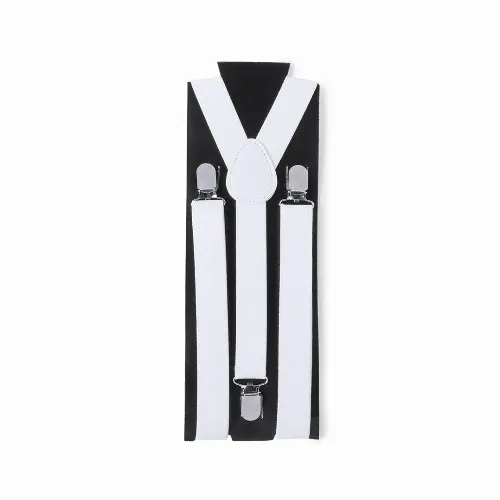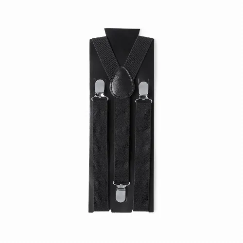 Elastic polyester suspenders in sober colors with metallic accessories.