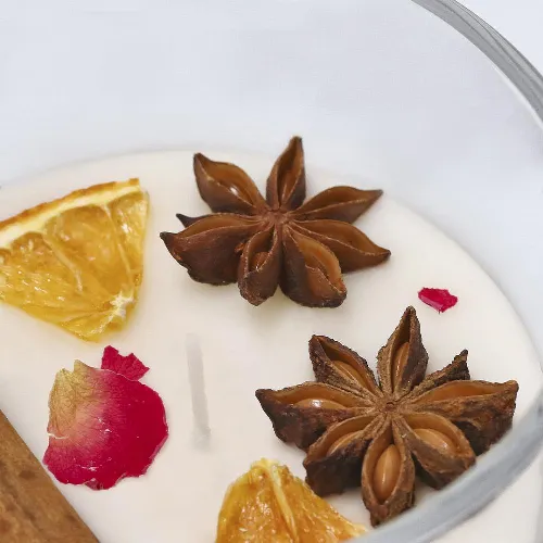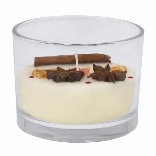 Aromatic candle made with vegetable wax and cinnamon & citrus fragrance.