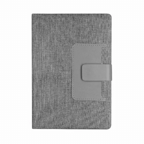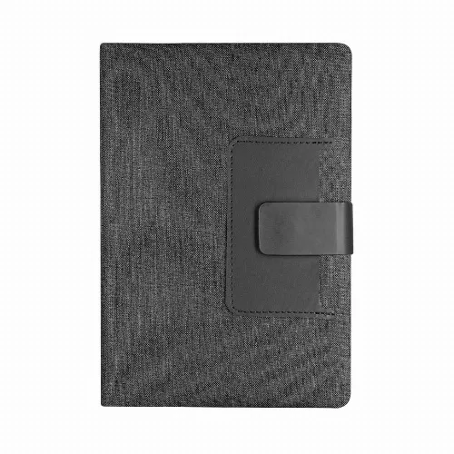 Notepad made from a combination of RPET 300D polyester and PU with rigid closures.