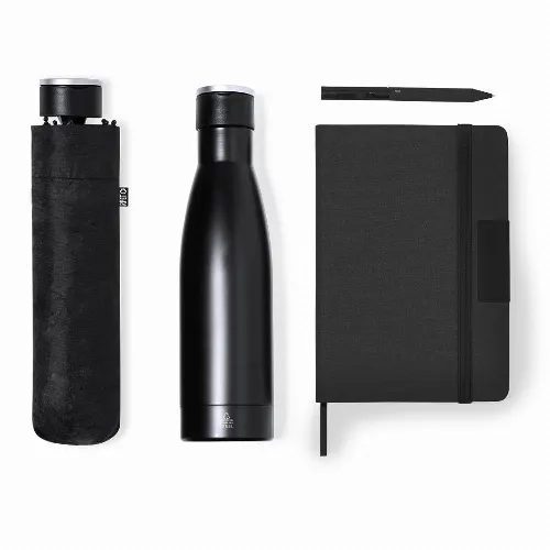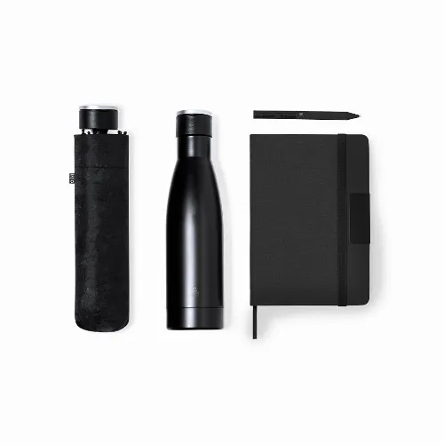 Stylish premium set including:Recycled stainless steel double-layer thermos bottle with matte black finish and 500ml capacity.