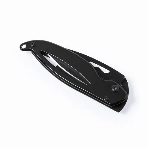 High quality knife with blade in dark stainless steel and handle in stainless steel with security lock.